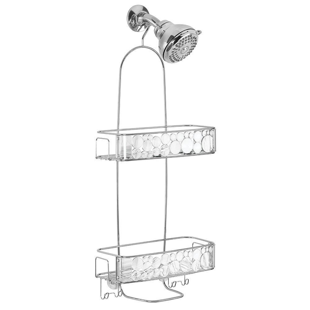 The Bubbli Shower Caddy XL creates storage with a fun design! This caddy features a polished and textured bubble design with silver accents. Its 2 shelves and side hooks provide sample room for storage.